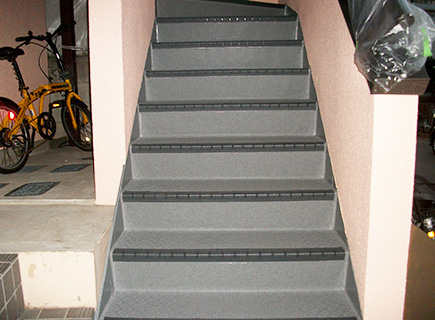 「アパートの外階段の床の汚れが目立つようになってきた」「マンション共用階段が剥がれてきた」「ビルの外階段が滑りやすくて危ない」「アパートの階段が古くなってきたのでキレイにしたい」「マンション修繕工事で階段工事を考えている」など外階段の補修・修繕工事をお考えの方は、施工実績豊富な外壁塗装ラボにおまかせ下さい。アパート・マンション・ビル・テナント・戸建住宅など建物の種類や大きさに関わらず、外階段や廊下の長尺シート工事の施工が可能です。既存の階段に使われている材料や劣化状況に合わせてどのような工事内容がオススメなのか専門家が分かりやすくご説明いたします。