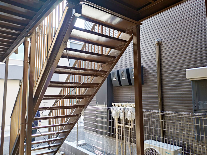 東京都豊島区アパートの共用階段溶接補強、塗装施工事例・・・