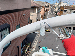 東京都江戸川区の街路灯塗装工事の施工にようすもご覧ください。